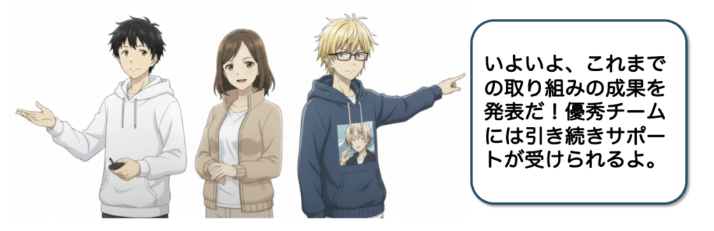 取り組みの成果を発表、”King of Quest"を決定し、その後の取り組み支援を行います。