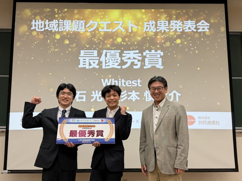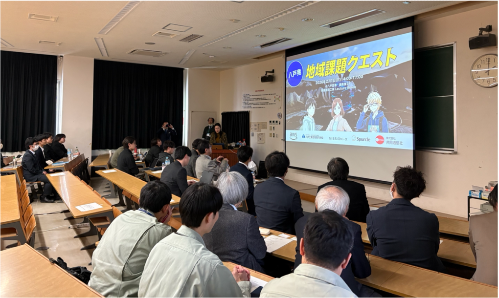 八戸高専で開催した「地域課題クエスト」成果発表会。参加者の学生の本質的な課題設定、テクノロジーを活用した解決策は、参加者の予想を超えるものでした。